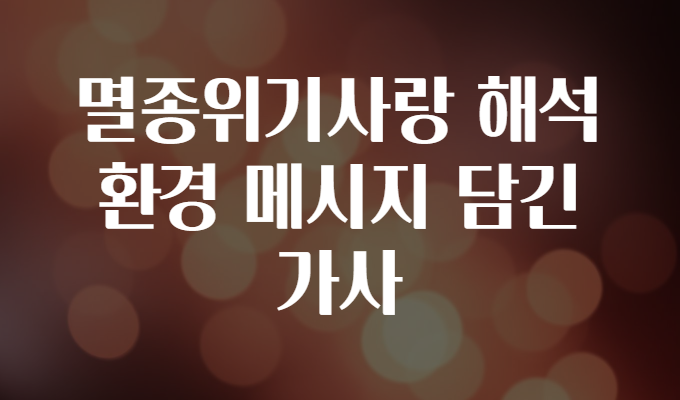 ๊ฐ์ฌ์ ๋ฑ์ฅํ๋ ‘๋ฉธ์ข ์๊ธฐ’๋ผ๋ ๋จ์ด๋ ์ด๋ฏธ ์ฐ๋ฆฌ์๊ฒ ๋๋ฌด ์ต์ํ์ง๋ง ๋ ์์ธํ ํ์ค์ด์ฃ . ๋ฉธ์ข ์๊ธฐ์ข ์ ์ง๊ตฌ์์์ ์์ํ ์ฌ๋ผ์ ธ๊ฐ๊ณ ์๋ ๋๋ฌผ์ด๋ ์๋ฌผ์ ๋ปํฉ๋๋ค. ๊ทธ๋ฆฌ๊ณ ์ฌ๊ธฐ์ ‘์ฌ๋’์ ๊ทธ๋ค์ ๋ณดํธํ๊ณ ์ ํ๋ ๋ง์, ํฌ๋ง, ์ฐ๋๊ฐ์ ๋ํ๋ ๋๋ค. ์ฆ, ์ด ๋ ธ๋๋ ๋ฉธ์ข ์๊ธฐ ์๋ช ์ฒด๋ฅผ ํฅํ ์ ์ ๊ณผ ํ๊ฒฝ ๋ณดํธ์ ํ์์ฑ์ ๋ ธ๋ํ๋ ๊ณก์ ๋๋ค.